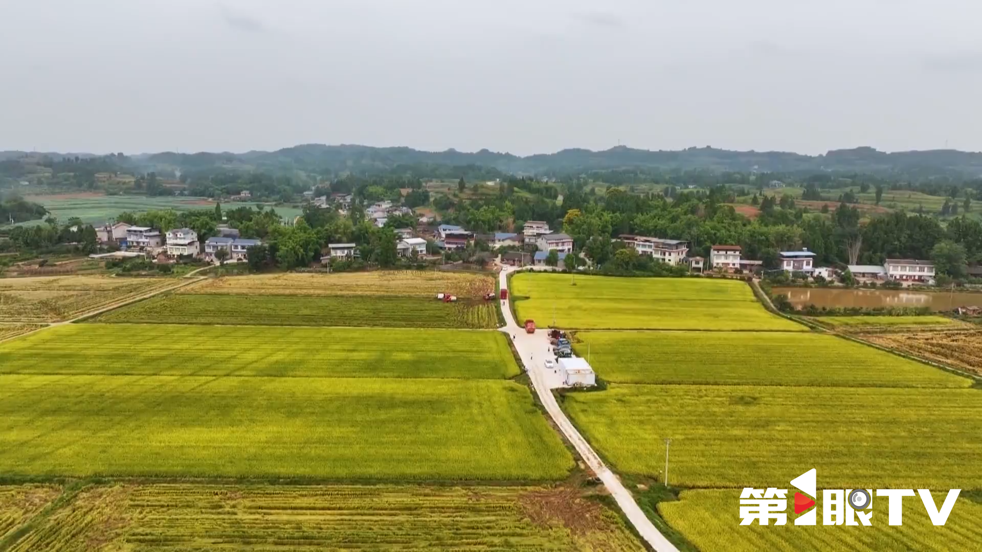 在潼南区崇龛镇柿花村的高产创建示范基地,连片稻田满目金黄。近年来,潼南区大力推进高标准农田建设,基地选用品香优美珍、甬优4949等高产优质品种,推广暗化催芽、集中育秧、机插机抛等高产栽培技术,并创新实施侧深施肥、“一喷多促”等关键技术,实现了水稻生产节本增效与绿色高质量发展。该片区还实行“稻油轮作”模式,实现“一田两用”,有效提升了土地产出与经济效益。