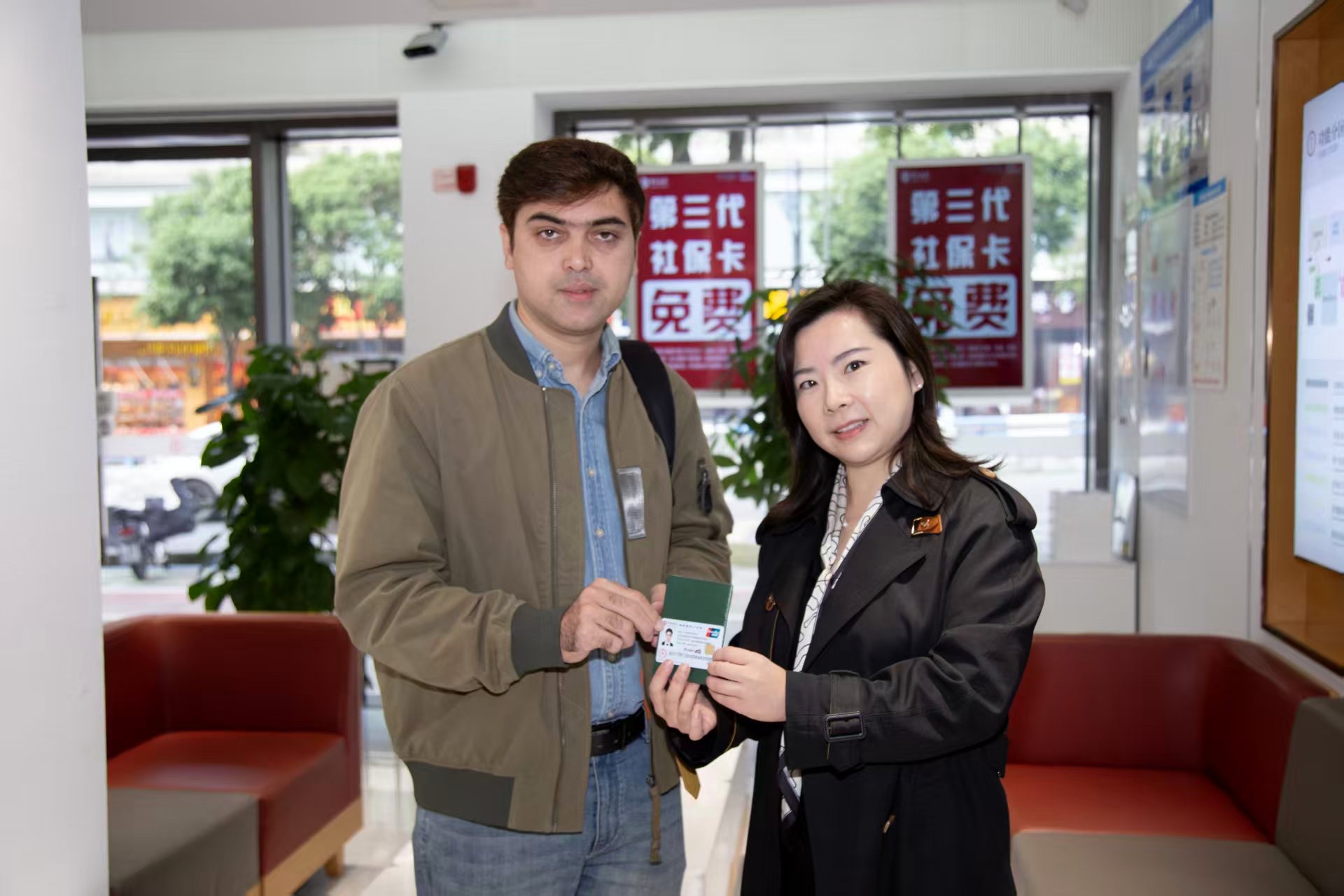 近日,来自巴基斯坦籍的lhsan Ullah(安森)与多位外籍人才一起,成功领取了首批“聚英卡”。