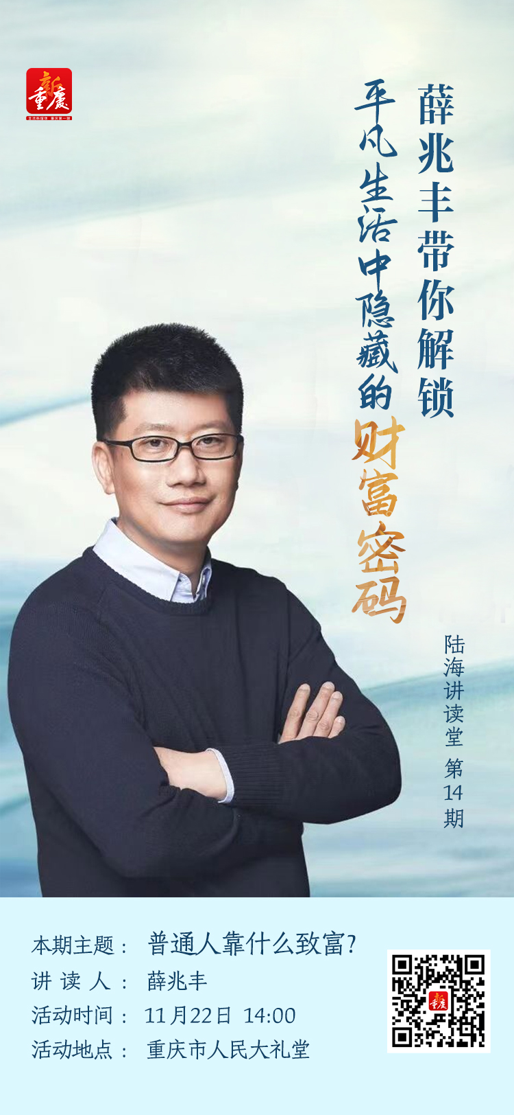 为什么你总感觉赚钱很难?为什么每天勤勤恳恳工作的你,收入却不见增长?为什么看着别人实现财富自由,自己总困惑找不到方向?问题究竟出在哪里?11月22日下午2点,经济学家薛兆丰将应邀做客“陆海讲读堂”第14期活动,以“普通人靠什么致富”为主题,带来一场精彩的分享。