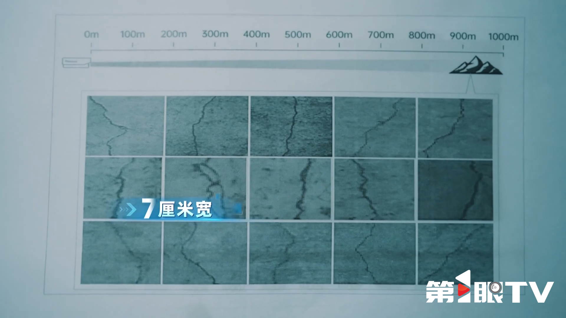 放大镜,看得清但看不远;手机相机,看得远,但是太模糊了。而这张测量图,是在1000米之外,拍到的7厘米宽的山体裂缝。这清晰度,令人惊叹。