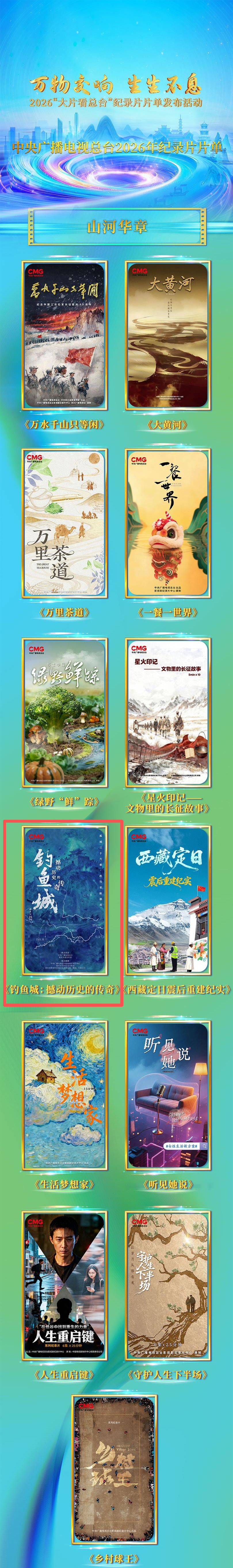 活动以“万物交响 生生不息”为主题,分“山河华章”“文脉千秋”“天地和鸣”“四海同奏”四个板块,62部大片集中亮相。活动以多元视角捕捉世界精彩、勾勒文明脉络,用创新表达汇聚蓬勃向上的精神力量。其中,由中央广播电视总台、重庆市委宣传部、合川区委区政府联合出品的历史人文纪录片《钓鱼城:撼动历史的传奇》成功入选。