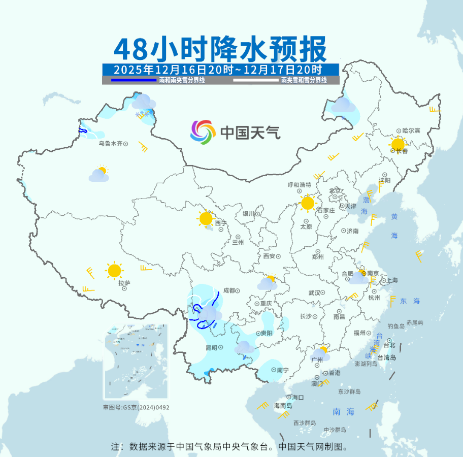 而南方部分地区将迎来弱降水过程。预计16日至19日,云南、贵州至华南等地将自西向东出现小雨或阵雨,南方的小伙伴们出门要记得带伞。19日之后,随着南支槽东移发展,而且北方有冷空气南下,降水范围将会扩大,大家要密切关注临近天气预报预警信息。