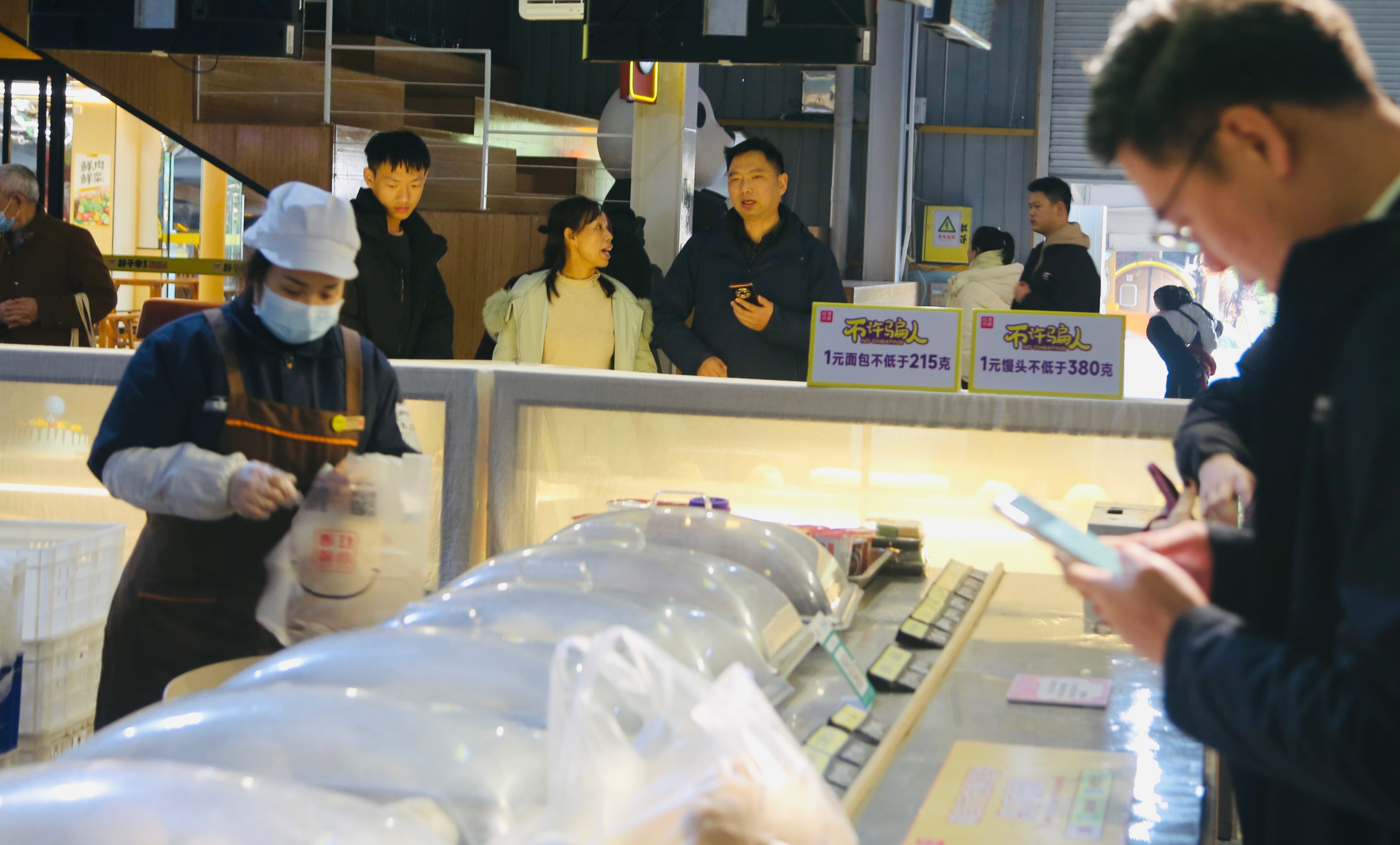 当前,车间的产品矩阵早已不止单一的馒头。红酒、面条、榨菜、豆干、曲奇、麻花等自产食品,与经典的“1元馒头”“1元胖包子”以及“1元面包”等共同构成了丰富的“小镇风味”产品线。