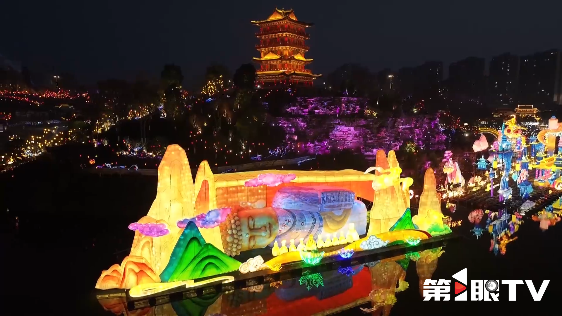 大足区,迎来首届石刻新春灯会。60余组大型灯组、3000余盏特色花灯,以千手观音、卧佛、父母恩重经变相、笛女等大足石刻经典造像为原型打造,在现代光影技术的映衬下,让千年石刻文化焕发出新的生机。