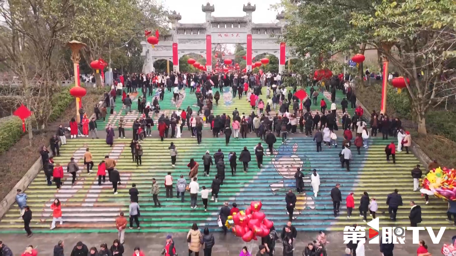 大年初二的奉节三峡之巅,人气爆棚。八方游客登高望远,俯瞰瞿塘峡雄奇壮阔的江景,在青山碧水间定格马年新春的美好瞬间。在云阳县,登云梯亦是人潮涌动,1999级青石台阶自江边蜿蜒而上,宛如天梯直通云端。市民游客纷纷踏阶而上,感受“万里长江第一梯”的壮观。