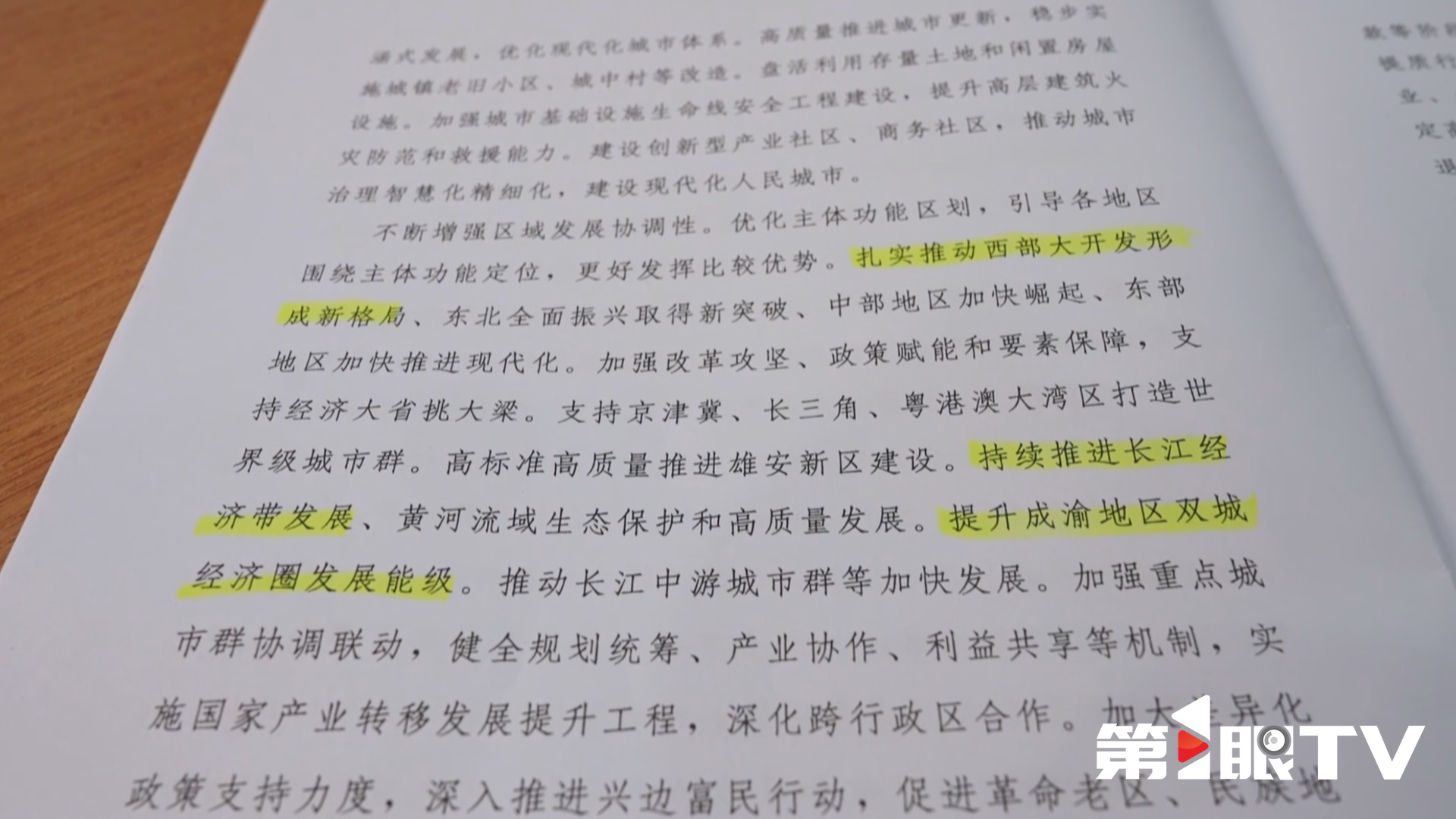 “直接提到了我们重庆的不少。比如说,提出要加快西部陆海新通道的建设,多次提到的要建设先进制造业集群,这跟我们重庆的‘33618’现代制造业集群体系是遥相呼应的。”