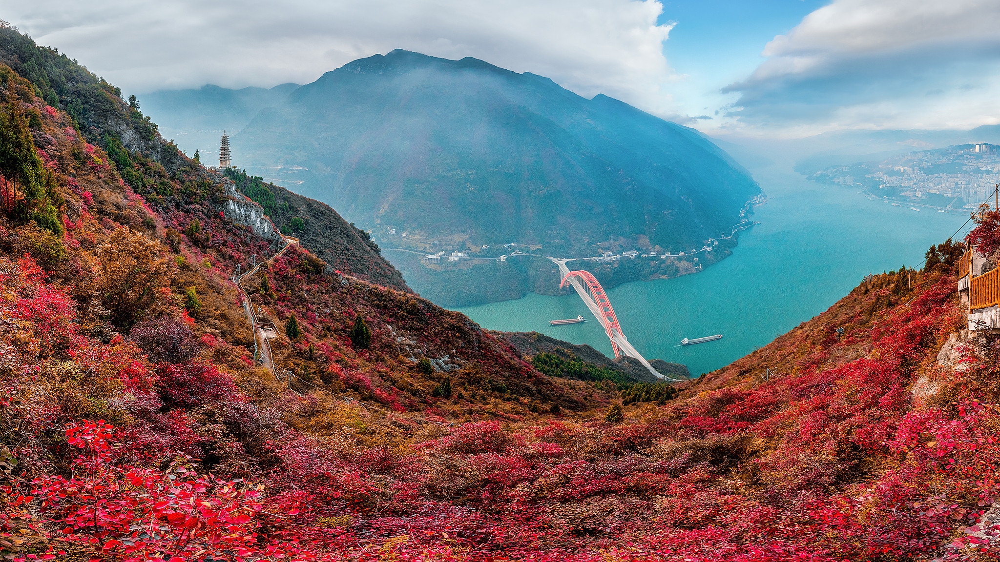 作为长江上游重要生态屏障区,重庆持续推进“两岸青山·千里林带”建设,生态修复与绿色发展协同并进。在巫山,每年的红叶节,已成为三峡库区一张亮丽的名片。长江两岸,红叶斑斓,层林尽染,迎来了天南海北的游客。很难想象,这是向“石漠化”要来的。