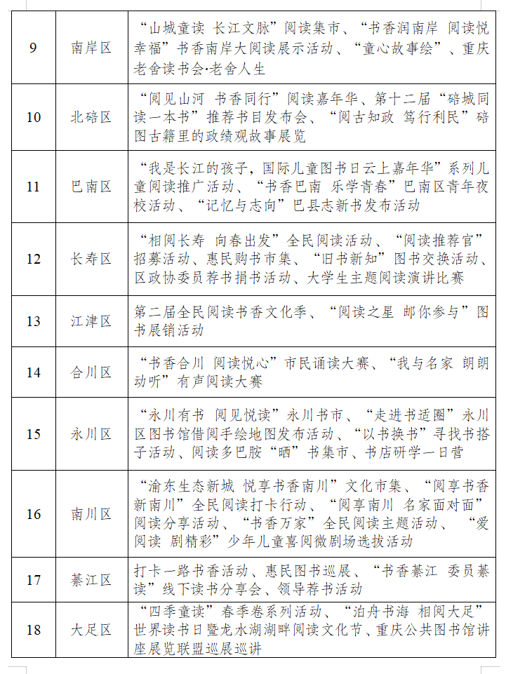 此外,将在重庆金融会展中心举办全民阅读推广新路径研讨会,邀请专家对全民阅读相关深度问题进行研讨。