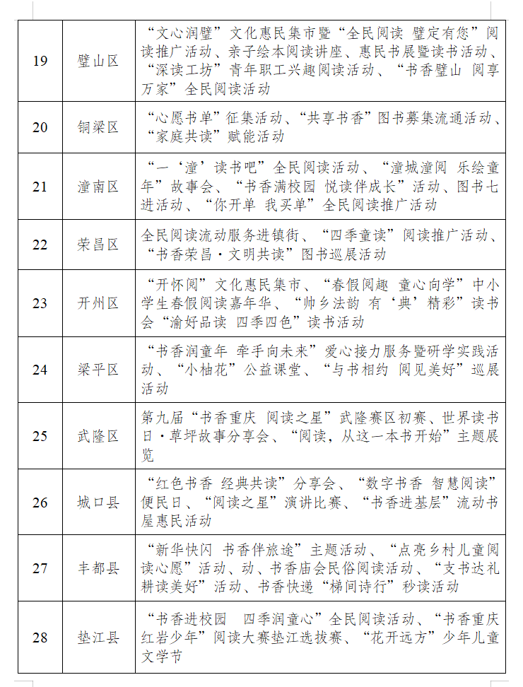 据了解,今年是《全民阅读促进条例》实施的首年,也是全国首个全民阅读活动周,于4月20日至26日开启为期7天的火热阅读活动。同时,为了进一步加强我市全民阅读工作,落实好《全民阅读促进条例》,市委宣传部会同市级相关部门,制定了今年的全民阅读活动周方案,市委宣传部也印发了《重庆市贯彻落实〈全民阅读促进条例〉暨2026全民阅读活动方案》。