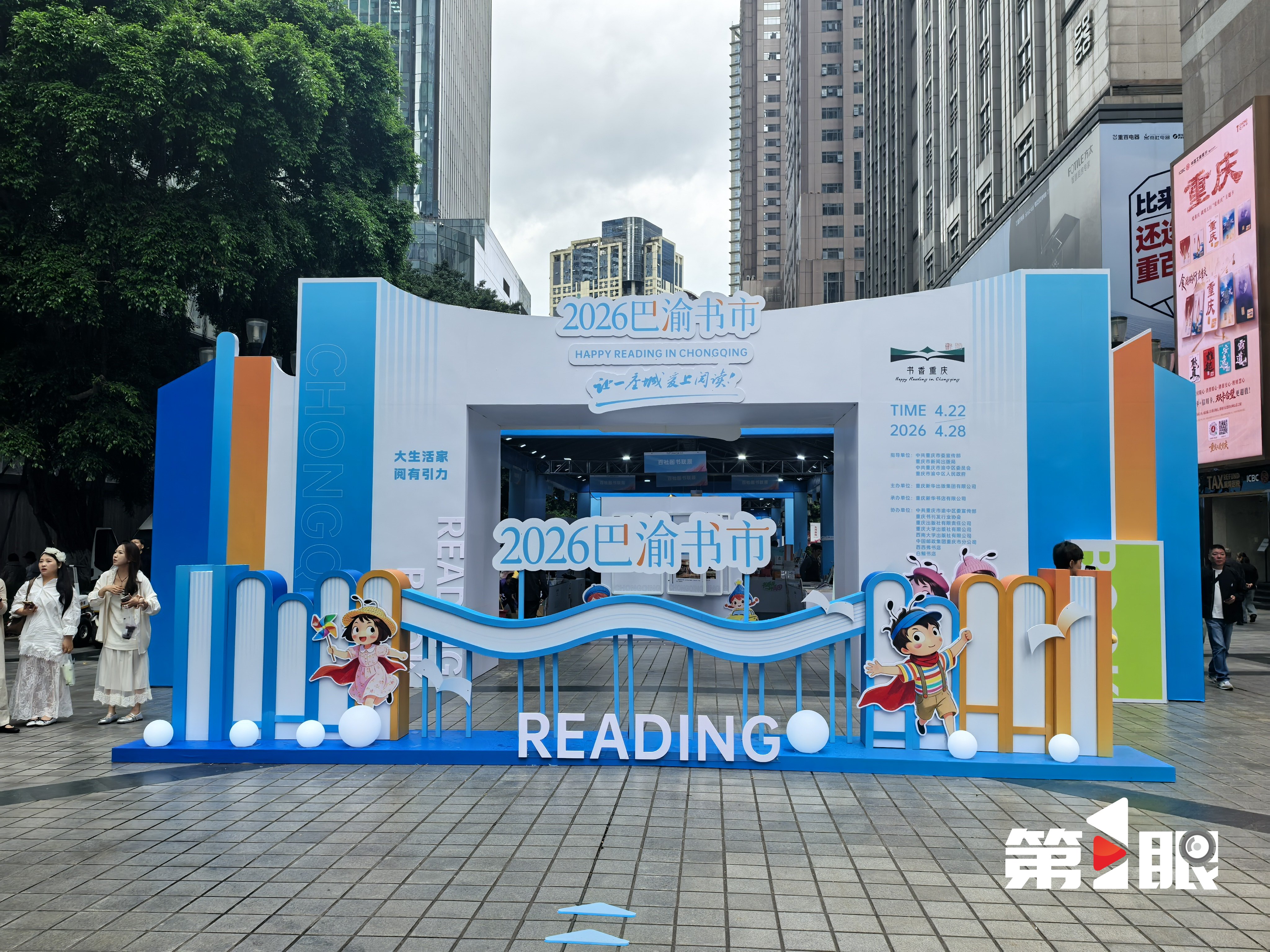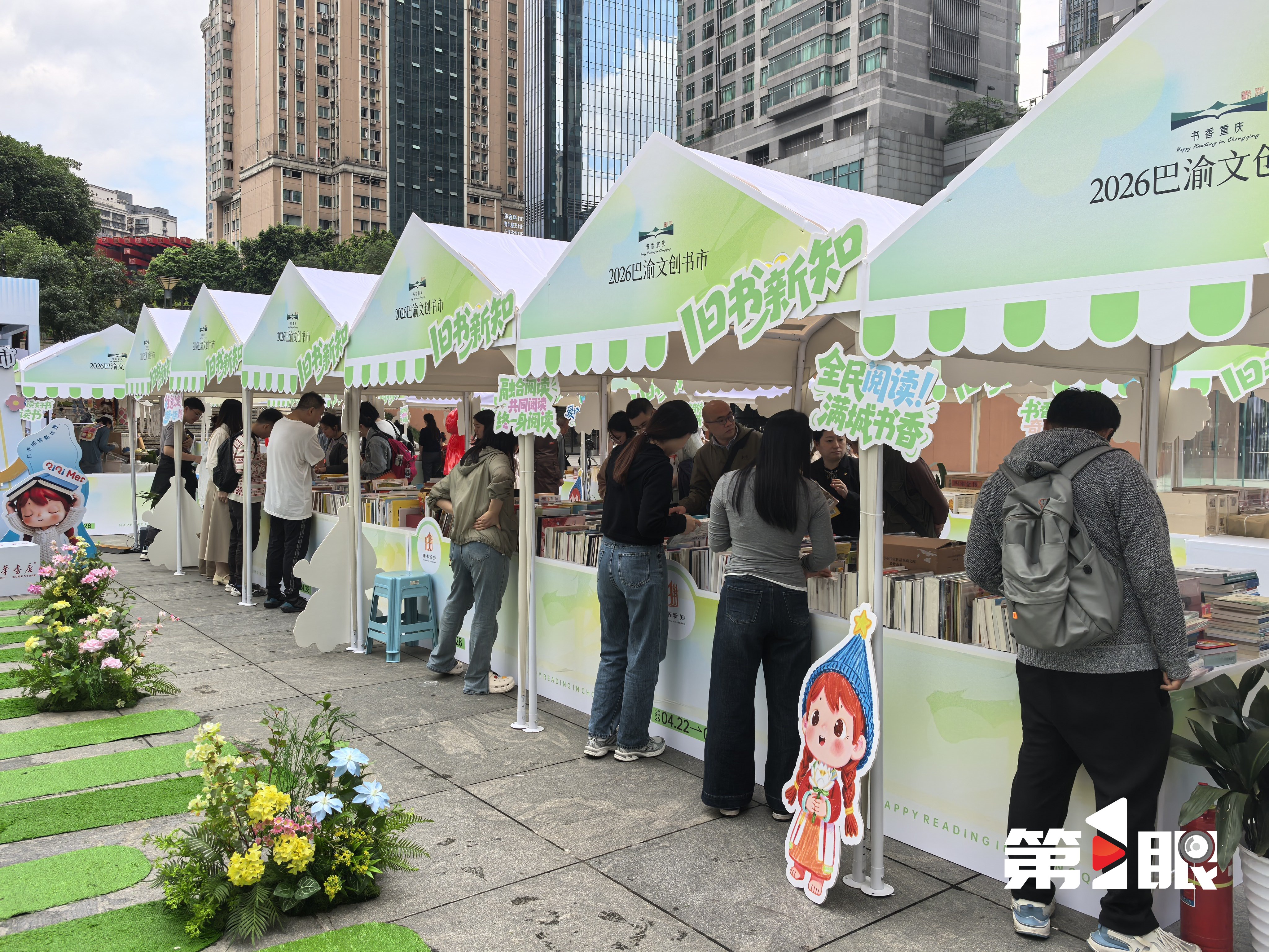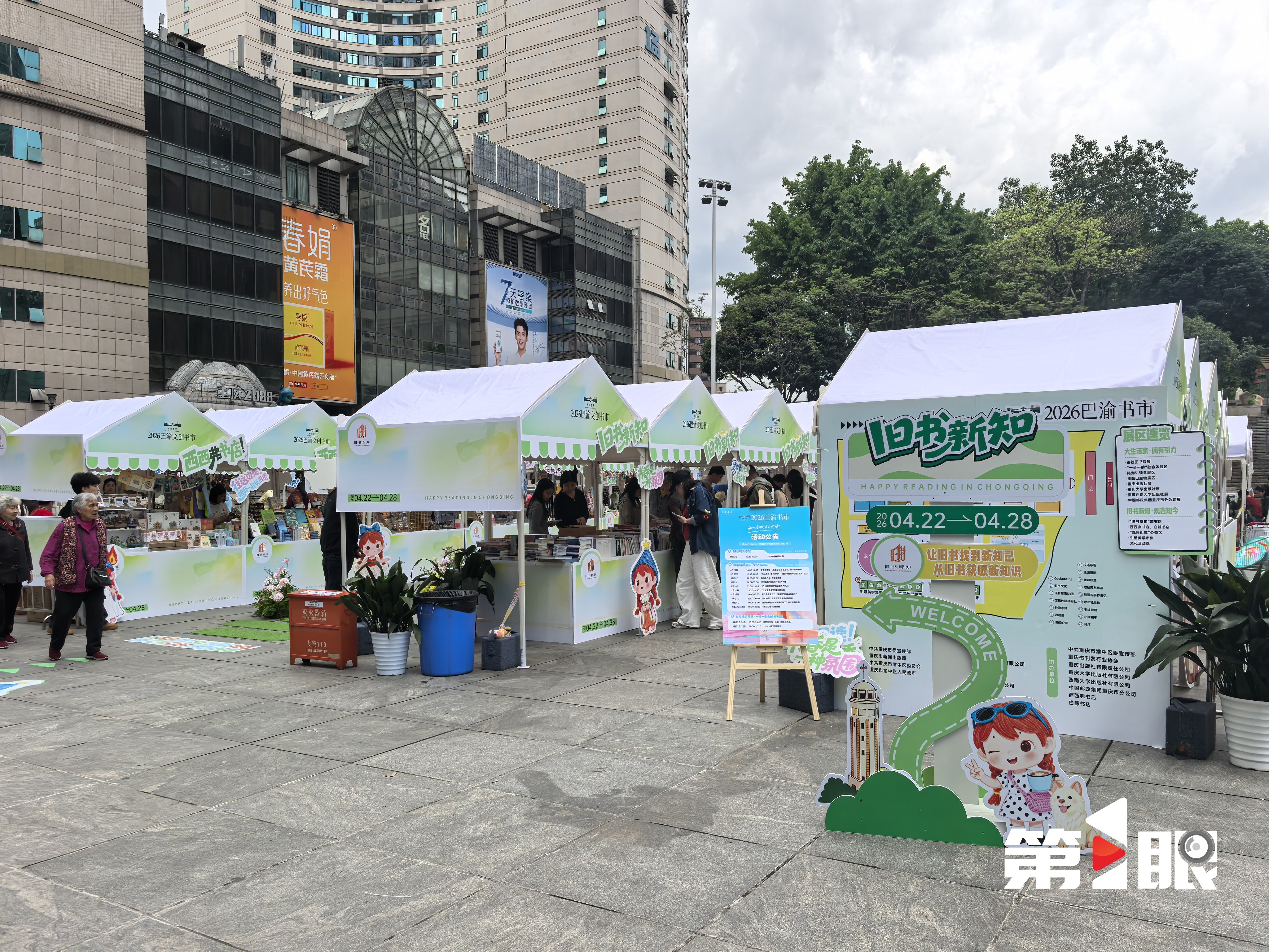 4月22日,2026巴渝书市在解放碑步行街开展,即日日起至4月28日,覆盖解放碑十字金街民族路、国泰地面广场两大核心区域的“巴渝书市”,邀请市民游客共赴一场春日阅读之约。