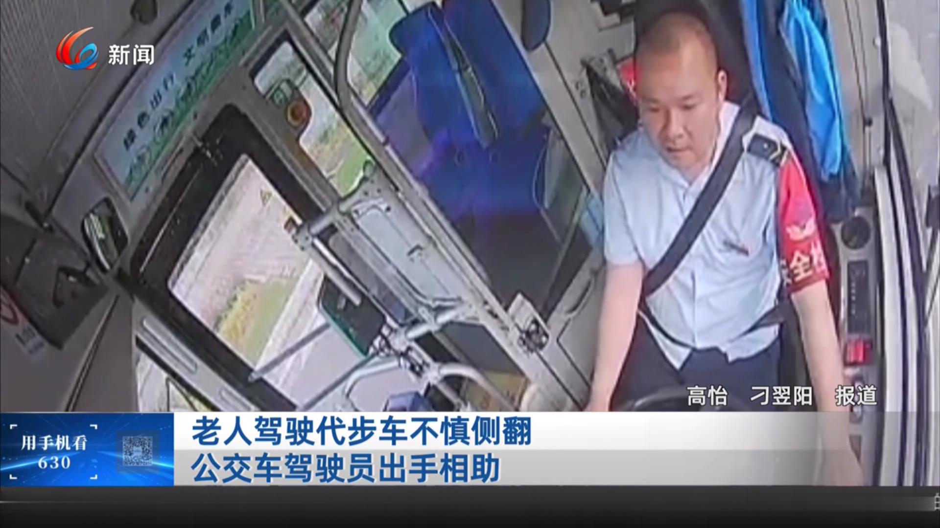 老人驾驶代步车不慎侧翻 公交...