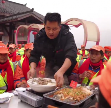 要过年啦!万州一店家请300名环卫工外卖骑手吃烤鱼