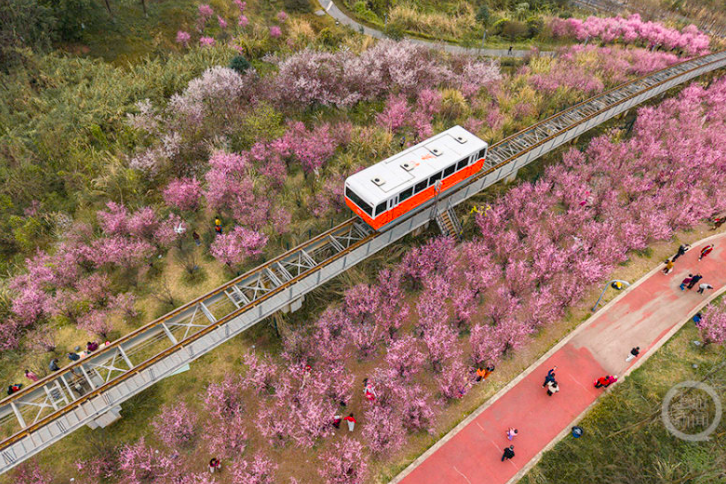 春暖山城,花开礼嘉。高空俯瞰,时光缆车如约驶过绚烂花海,像一条流动的彩线。花丛间,游人的欢声笑语此起彼伏,与春光共舞。不负这场春暖花开之约,将这份春天的生机与温暖,化作春日里最长久的珍藏。