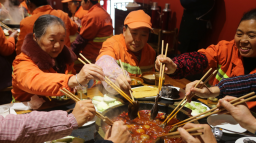 红围巾暖身热火锅暖心 美心红酒小镇连续多年设宴致敬“城市美容师”