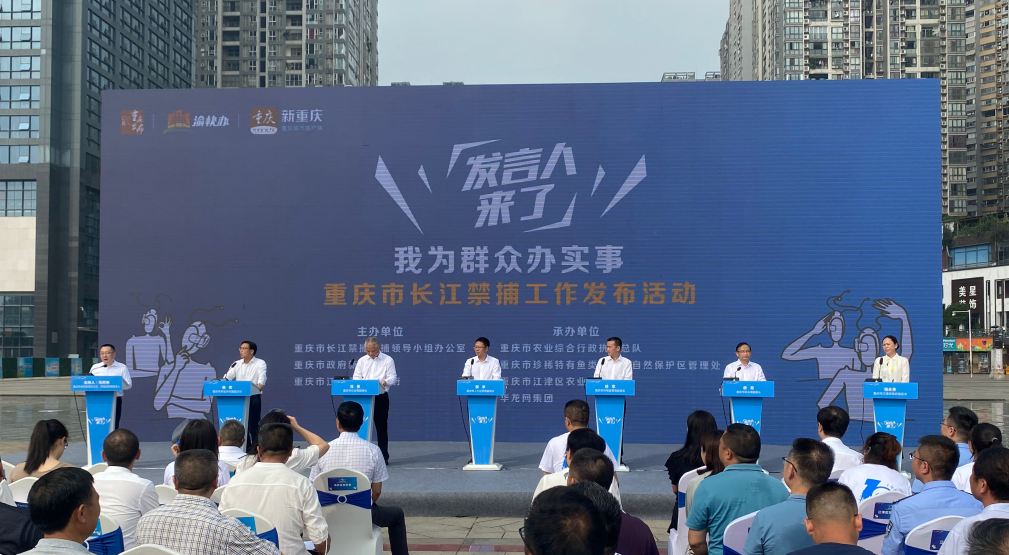 7月6日,“发言人来了——我为群众办实事”重庆市长江禁捕工作发布活动在重庆市江津区聂荣臻元帅广场举行,来自市农业农村委、市公安局、市人力社会保障局、市市场监管局、市林业局和江津区的几位发言人与现场市民面对面交流,答疑解惑。