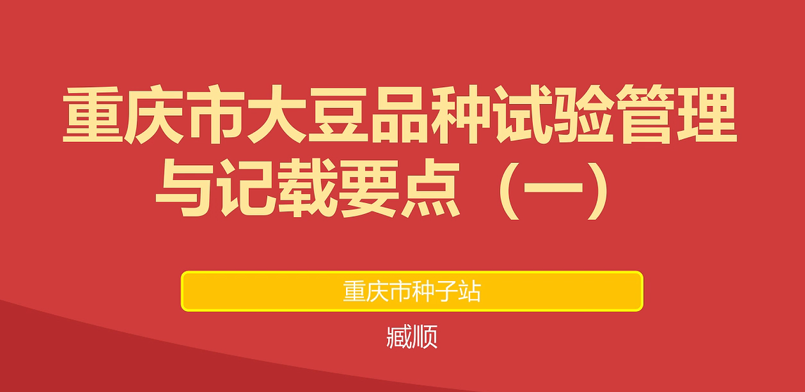 【农技慕课】重庆市大豆品种试验管理与记载要点(一)