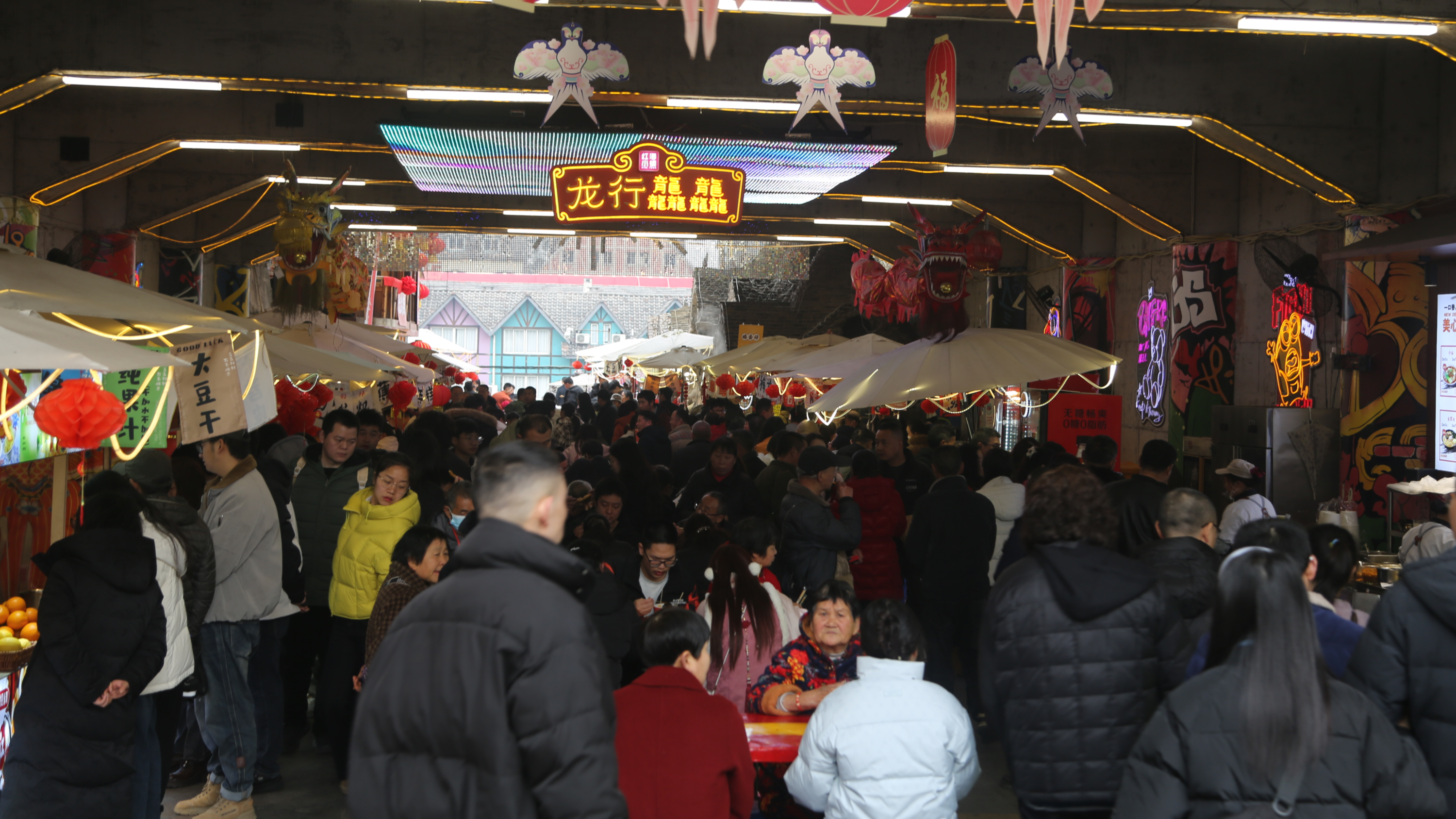 丙午马年新春,全国文旅消费持续升温、人气爆棚。重庆涪陵美心红酒小镇就业帮扶车间年货集市里,特色食品产销两旺,游客边逛景区边消费,年味十足。