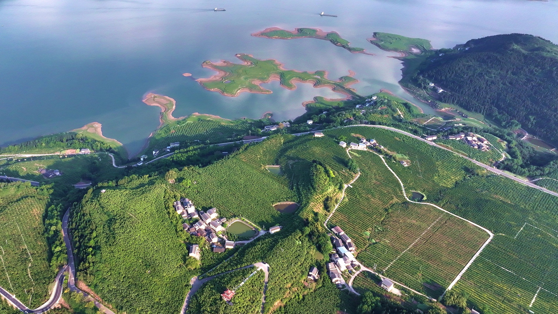 4月18日,长江重庆忠县涂井乡友谊村段呈现出一幅山明水秀、硕果满枝的美好画卷。
