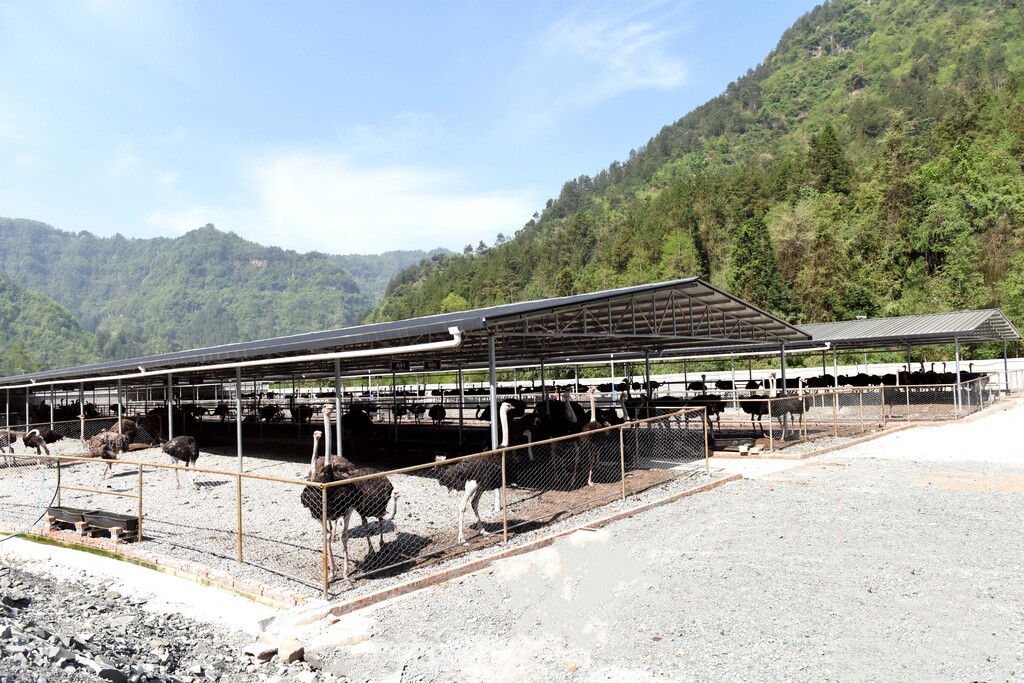 当日上三竿,春日暖阳洒在位于沙子镇星光村的金钥匙(重庆)农业发展有限公司鸵鸟孵化基地时,围栏内的500多只种鸟渐渐活跃起来,开始悠闲踱步,享受着惬意时光。公司总经理向仁祥带领当地务工群众,拉着一车车精心配制的饲料前来投喂,一只只高大健壮的鸵鸟纷纷俯下身子,津津有味地享用着“早餐”。