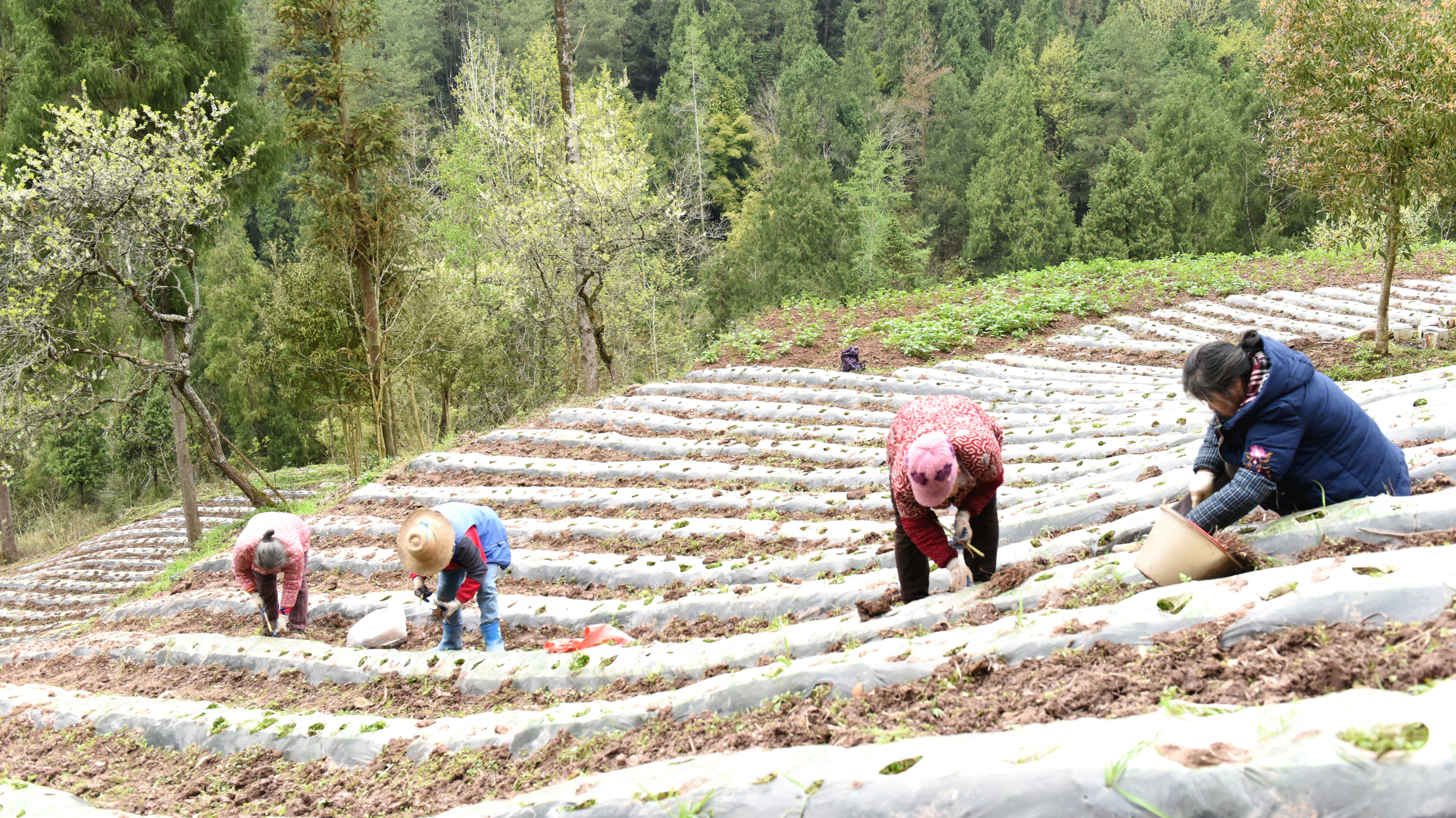 巫山县骡坪镇骡坪村的村民抢抓农时,在梨花盛开的树下种植魔芋。首次尝试“梨树+魔芋+玉米”立体套种新模式,通过科学布局实现“一块田地、多份收益”,助力村民增收致富。