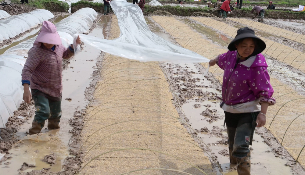 这几天,万州区白土镇联盟村田间地头一片繁忙,村民在高标准农田里抢抓农时播种秧苗。平整田块,撒谷种,覆盖薄膜,一气呵成。近年来,当地推进高标准农田建设,田块平整、灌溉便利,目前不分耕地由种植大户集中承包经营,通过机械化、集约化管理提升生产效率,为粮食稳产增收奠定基础,助力乡村振兴。
