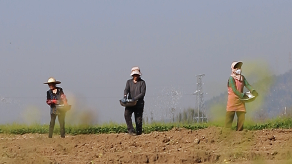 春日暖阳倾洒,田间满是生机,农人弯腰忙碌,播种着新一年的期冀。