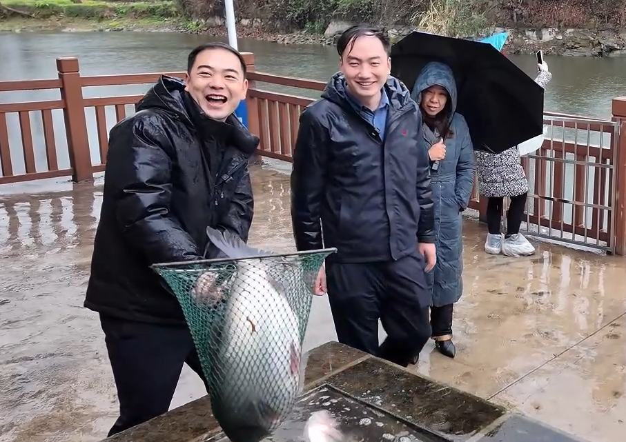 鱼跃人欢丰收时。铜梁区巴川街道千年村集体经济养殖的生态鱼又迎来丰收。