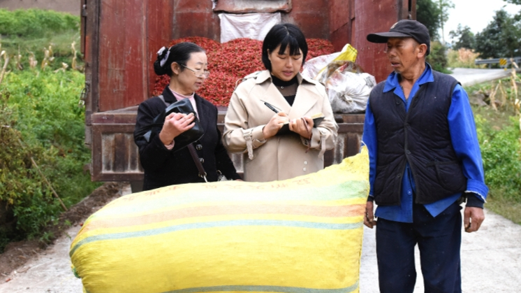 10月5日,虽是国庆长假,但石柱县晒坝梁辣椒专业合作社理事长郭先娥没有闲着,天刚亮便拖着残疾的身体,在丈夫田兴玉的帮助下,租用一辆大货车,来到六塘乡回龙村龙骨组,按照每斤3.1元的统一价格,逐户回收当地群众采摘回来的朝天椒。