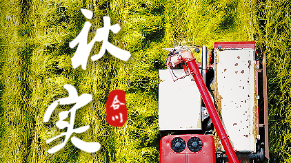 骄阳吻稻浪,机器鸣秋声,金黄簌簌落,每粒都裹着暖阳的温度。