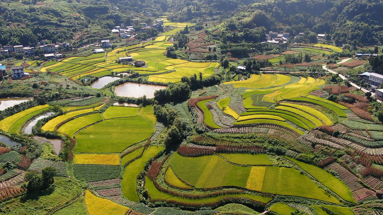 初秋八月,金风送爽。鸟瞰重庆市合川区广袤田野,稻谷翻涌成浪,似金色海洋。谷穗低垂,在阳光下闪耀着丰收的光芒,满是希望的芬芳。
