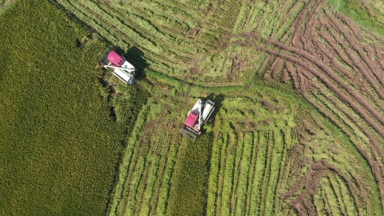 在重庆市合川区广袤的田野上,“铁牛”轰鸣着闹丰年。它们欢快穿梭,将金黄的稻穗卷入怀中,扬起的谷粒似璀璨的金砂。农民笑开颜,这丰收的景象,是大地最美的馈赠。