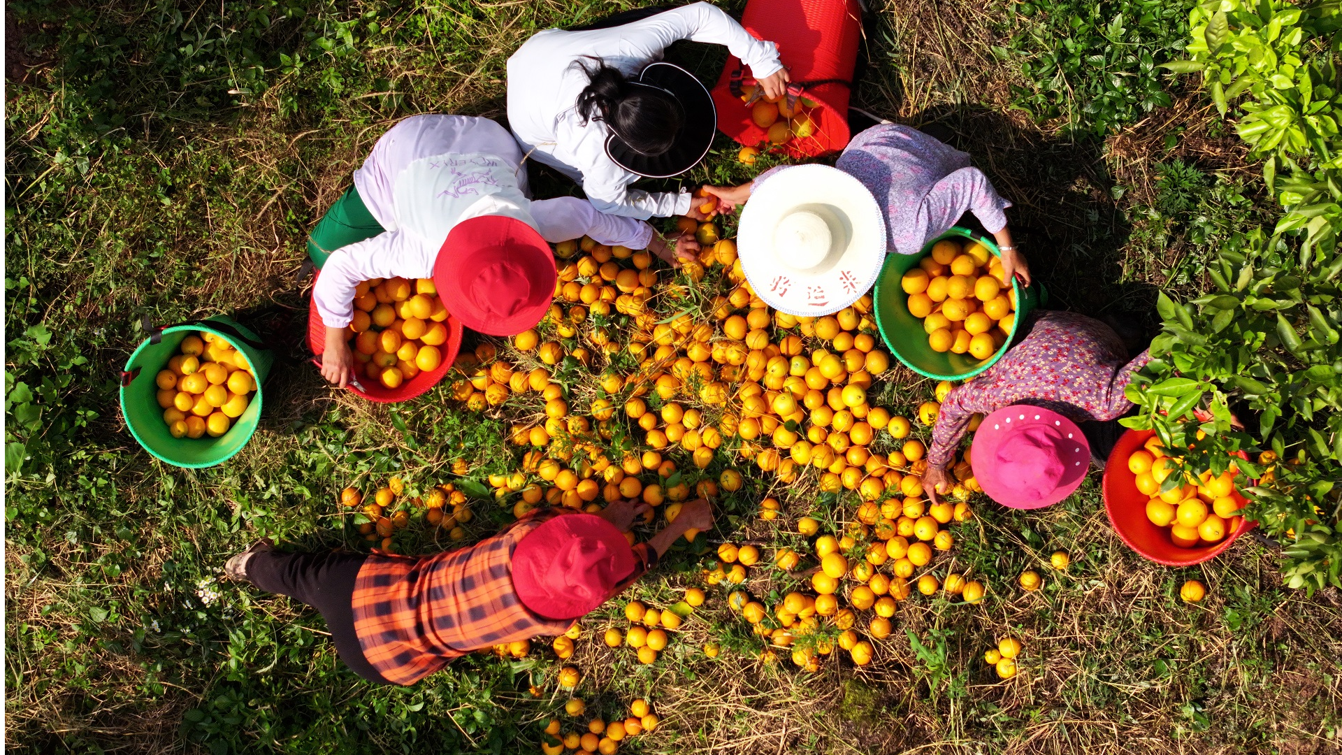 初夏时节,瓜果飘香。这段时间,重庆忠县近10万亩夏橙进入成熟采摘期,当地正组织人员采摘夏橙,田间地头一派丰收忙碌景象。