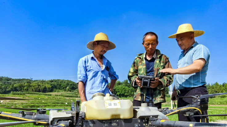 6月24日,合川区燕窝镇炉山村党员助农先锋队队员李向国,一大早就来到村民祝显明家的稻田,宣传普及稻瘟病预防措施。看着党员李向国忙碌的身影,祝显明开心地笑了。“三夏”农忙时节以来,燕窝镇结合辖区实际,成立了13支由机关干部、村社干部等组成的党员助农先锋队,深入田间地头、村社院坝,帮助村民夏收、夏种、夏管,开展农技培训等,助力农业增效、农民增收。