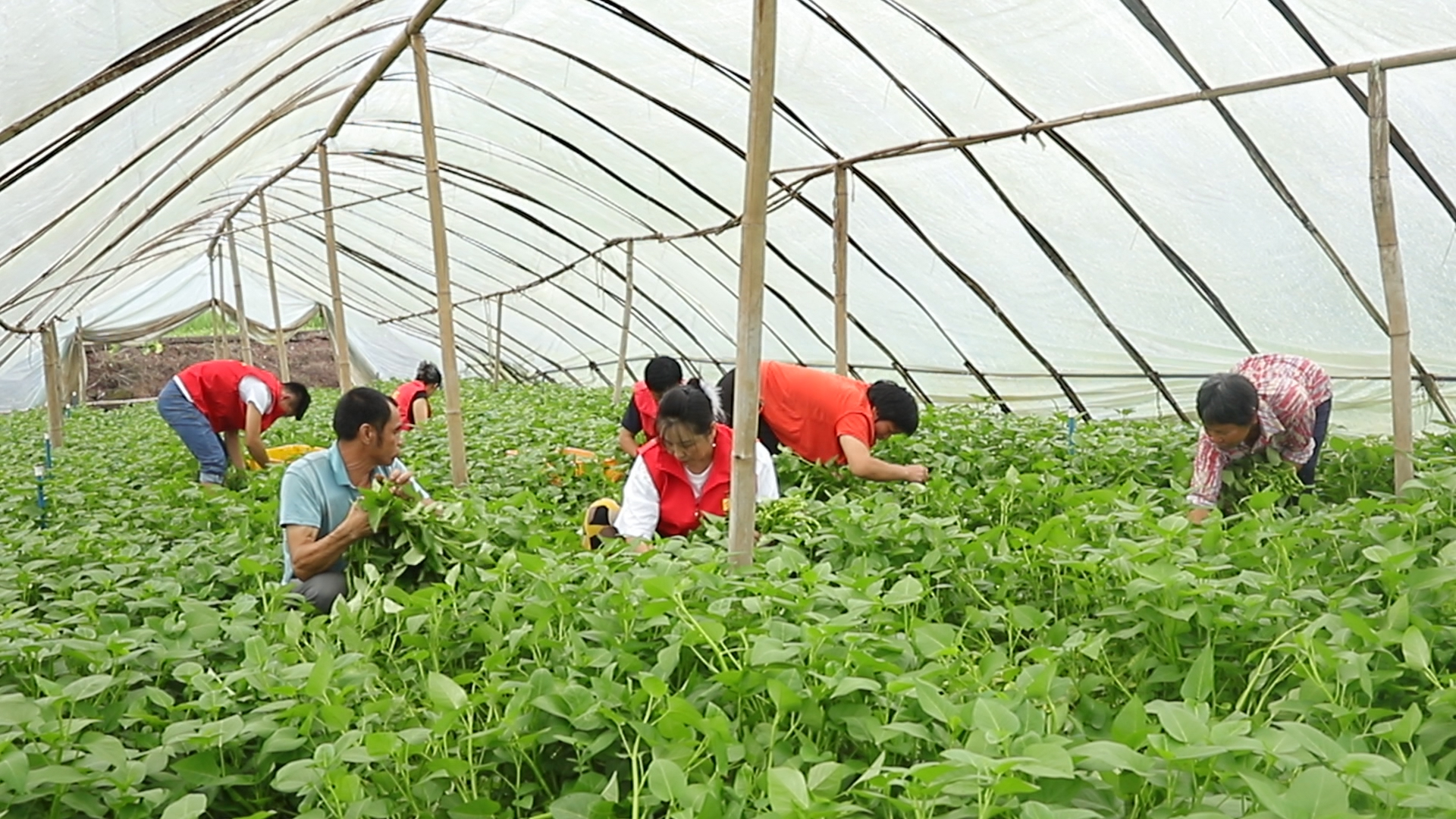 入夏以来,走进石柱县黄水镇金花村,在一排排错落有致的塑料大棚内,西红柿苗长得郁郁葱葱、高山辣椒苗和番茄苗长势旺盛、虎杖苗枝繁叶茂……整个产业基地一片欣欣向荣的景象。