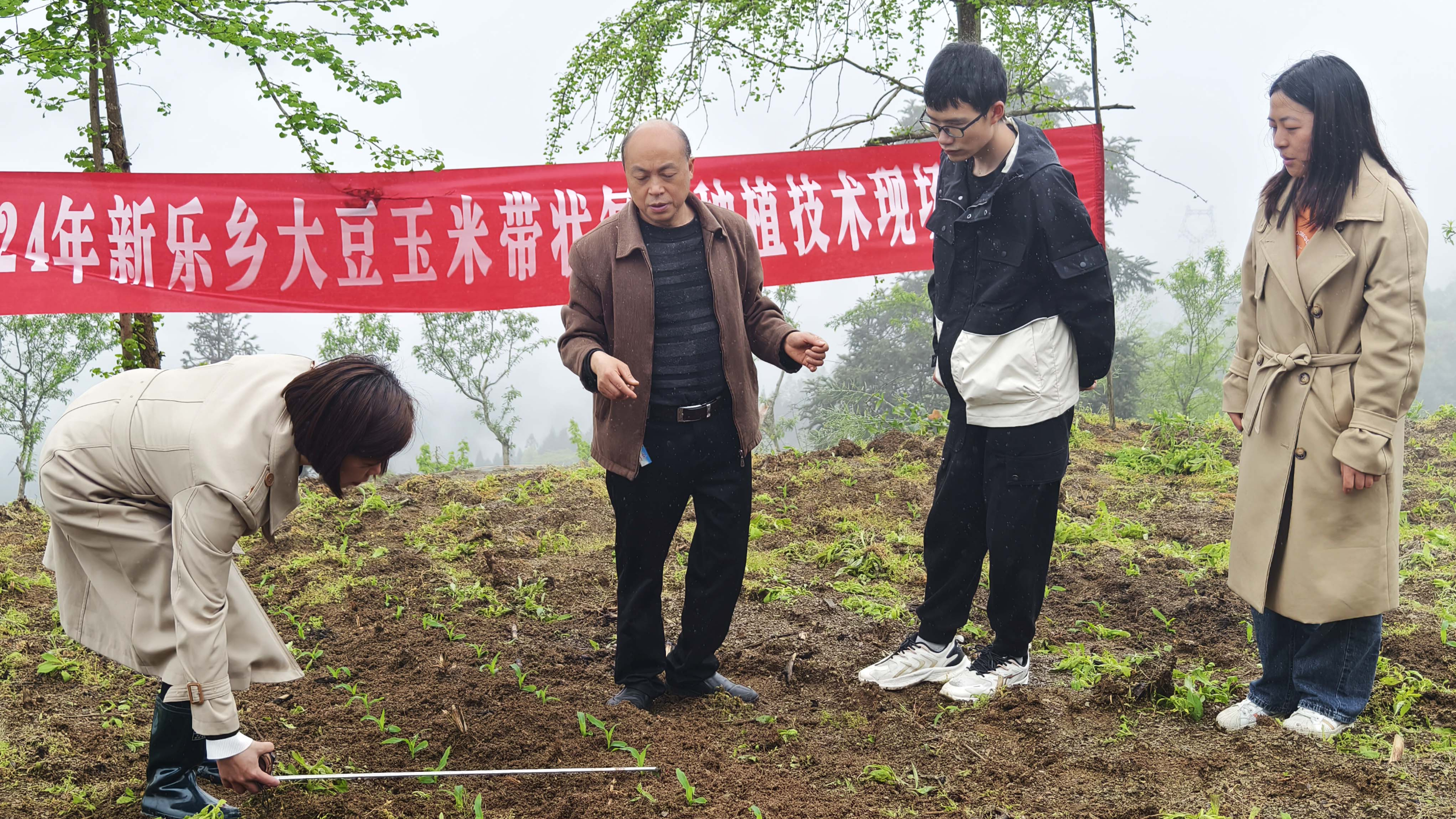 “大家套种的时候一定要注意,行距和间距是关键,3行大豆套种2行玉米。”近日,一场别开生面的“微课堂”走进石柱县新乐乡新建村谭安营组,该乡农服中心技术人员正在田间地头为村民讲解“大豆+玉米”复合种植技术。