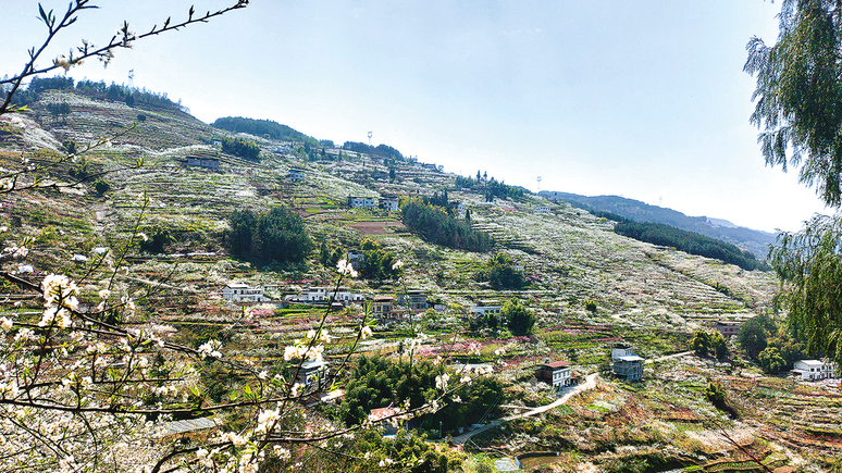 重庆开州文峰街道高市村千亩桃花李花向阳而开,络绎不绝的游客穿梭在花丛中。