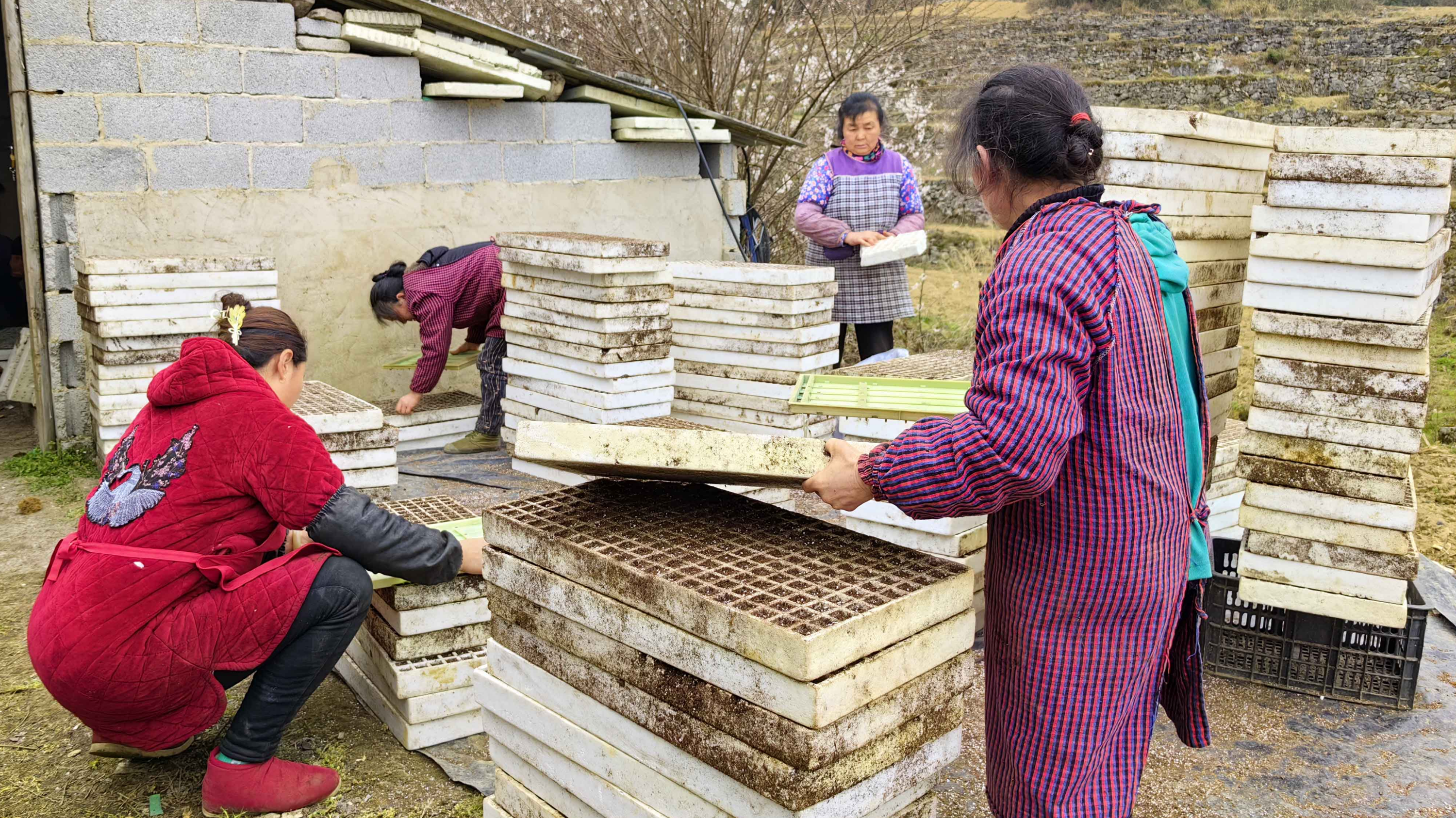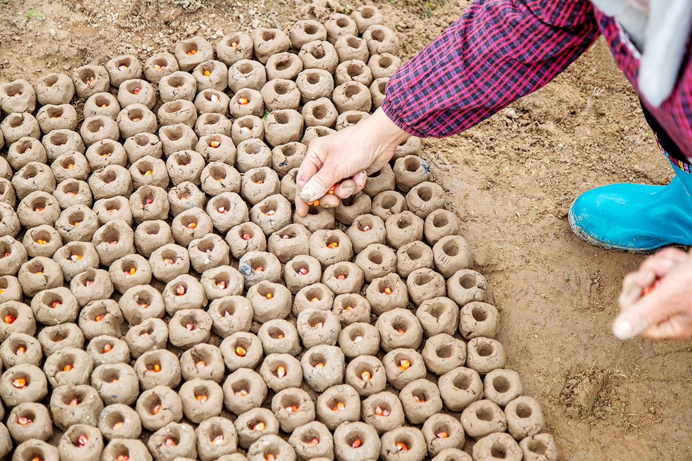 3月9日,忠县忠州街道独珠村,有的村民利用肥球培育玉米苗,有的采取地膜覆盖培育玉米苗。