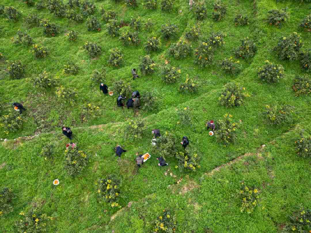 立春时节,在合川区二郎镇松林村谭家湾柑橘种植基地,一个个黄澄澄的“明日见”挂满枝头,随风摇曳,果香四溢,村民正忙着采摘、分拣、转运、上车,脸上洋溢着丰收的喜悦。