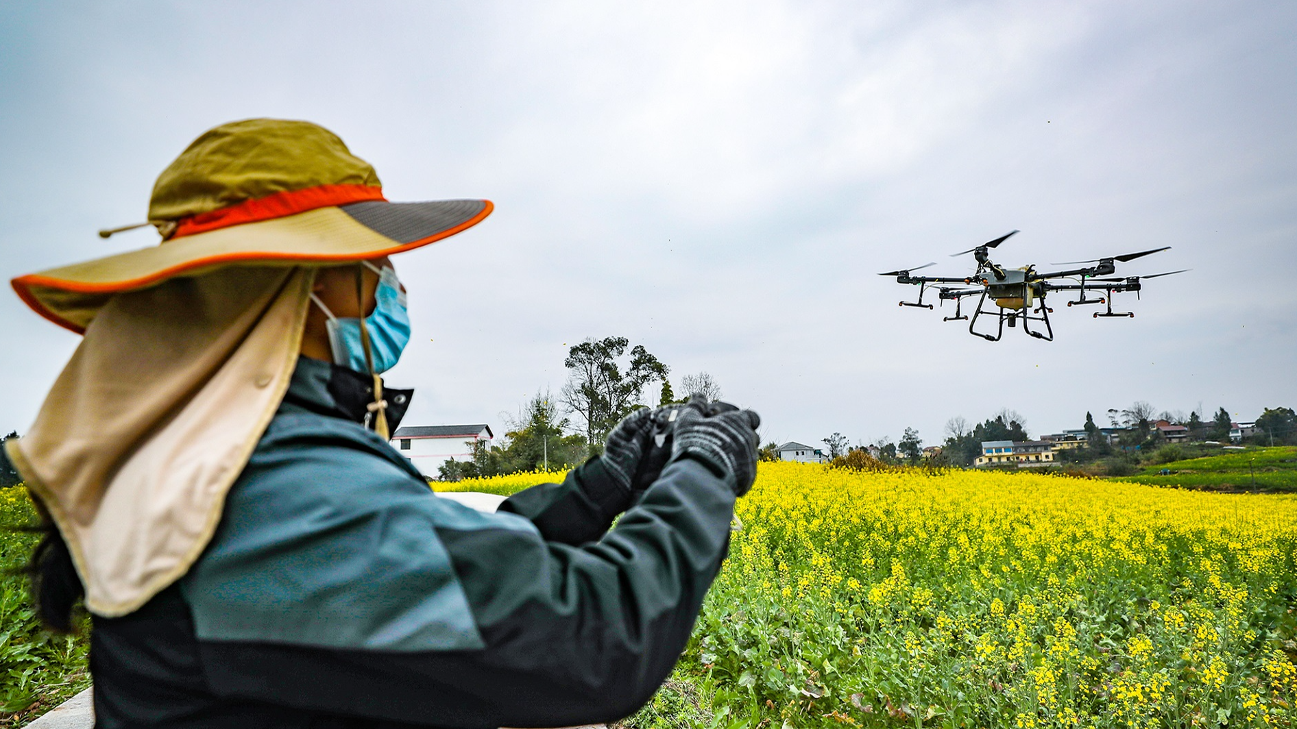 装水、起飞、喷洒……2月26日,忠县马灌镇灌湖水乡油菜基地,伴随着阵阵螺旋桨的嗡鸣声,两架大疆T30植保无人机快速升空喷洒,不到半天就完成300余亩油菜喷施任务。