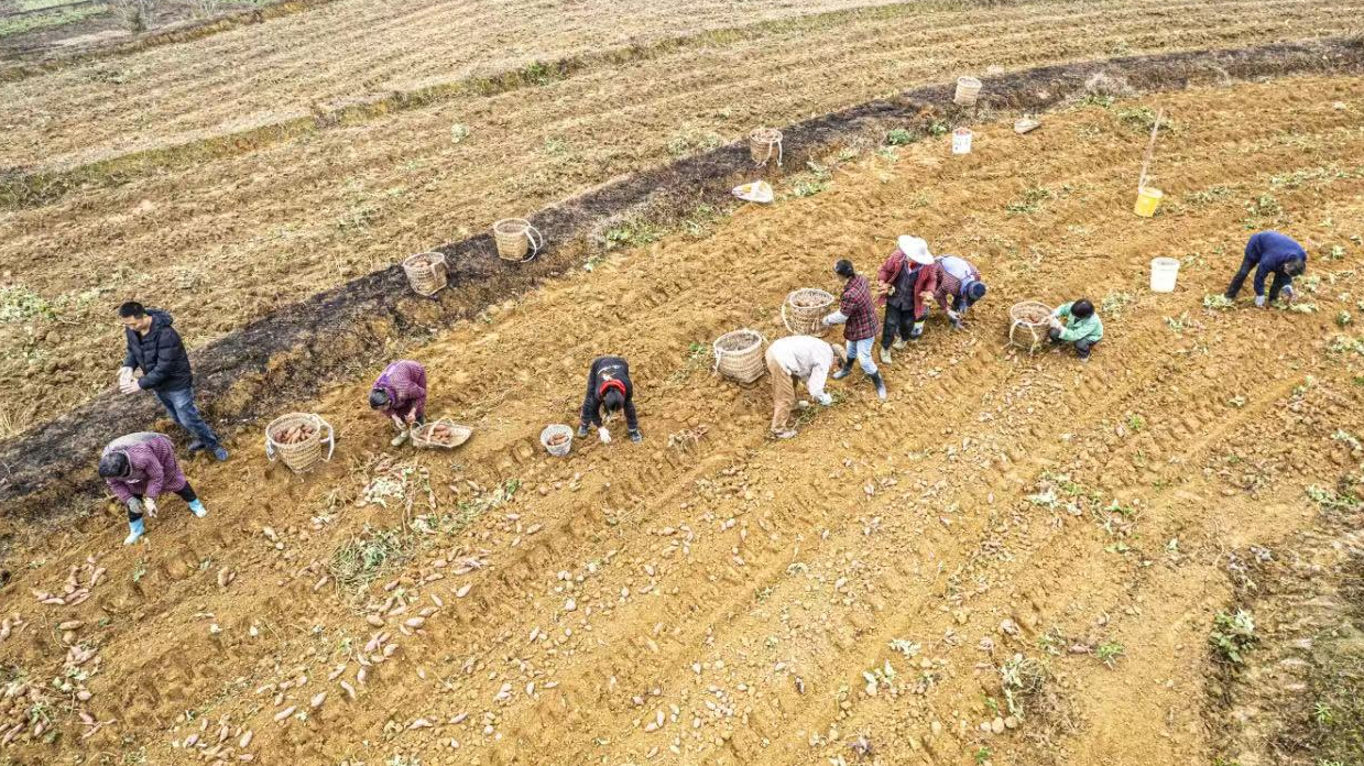 12月11日,在重庆市合川区钱塘镇大柱村土豆种植基地,村民正抢抓农时采挖、分拣、装袋、上车,现场一派忙碌的景象。近年来,大柱村因地制宜,流转土地300余亩,采取“公司+农户”的模式进行土地轮作,大力发展土豆、玉米、油菜、黄豆等农作物种植,助力农业增效、百姓增收。