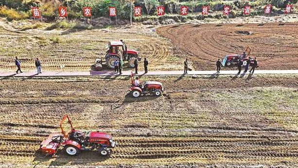 11月1日,彭水县绍庆街道阿依河社区农机实训基地,学员们在教练的指导下认真练习拖拉机、收割机、旋耕机等农业机器设备的现场实作,提升农机操作技能。