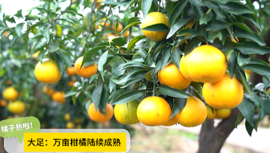 又到一年柑橘成熟季,进入10月下旬,大足区上万亩柑橘陆续成熟上市,金灿灿的果实挂满枝头。在大足区中敖镇明月村,玉皇沟果园满目苍翠、绿意盎然,600多亩的济华杂柑成熟待采,一行行柑橘树排列整齐,金黄色的柑橘个个个大饱满、密密麻麻地挂满了枝头,行走其间,还能闻到散发出来的阵阵果香。果农们在果树间娴熟地穿梭采摘,不停地操作着手中的剪刀,将一个个柑橘剪下,装入篮筐之中,丰收的喜悦弥漫了整个果园。