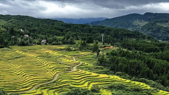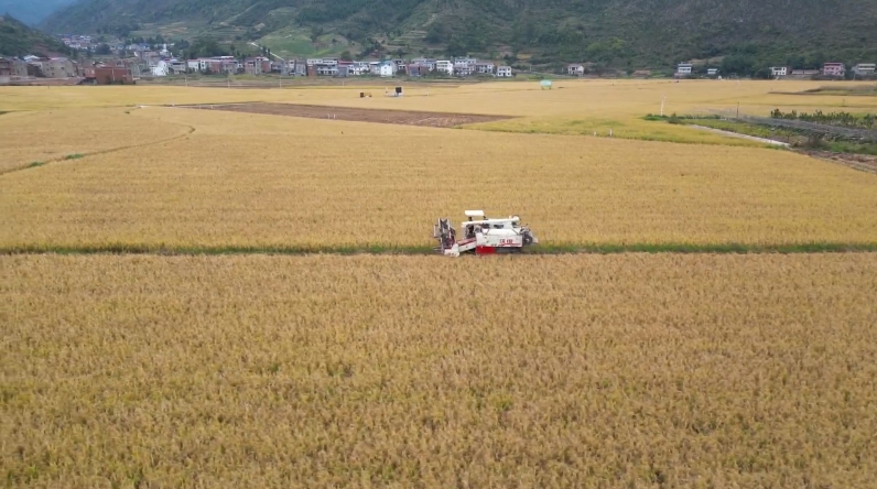 风吹稻香,满目金黄。近段时间,在位于石柱县三星乡的“重庆最美梯田”——大梁子梯田水稻产业示范片,集中连片的稻田翻滚着金色的稻浪,田间地头,数台收割机来来回回开展抢收作业,金灿灿的稻谷和丰收的喜悦汇聚成一首首美妙的“交响曲”,让丰收果实颗粒归仓。