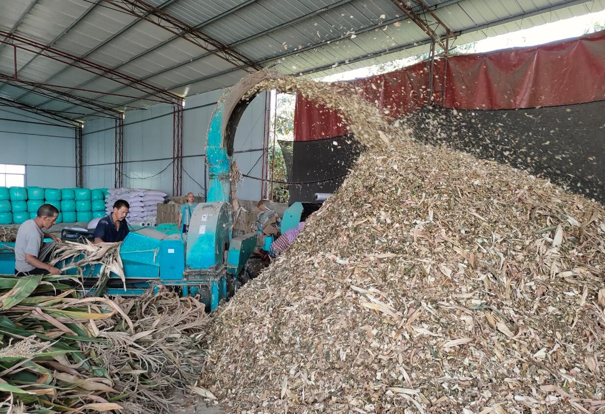 8月16日,在忠县石宝镇新权畜牧农业有限公司,来自汝溪、涂井、石宝等乡镇的村民驾驶满载秸秆的农用车经地磅称重后卸载。