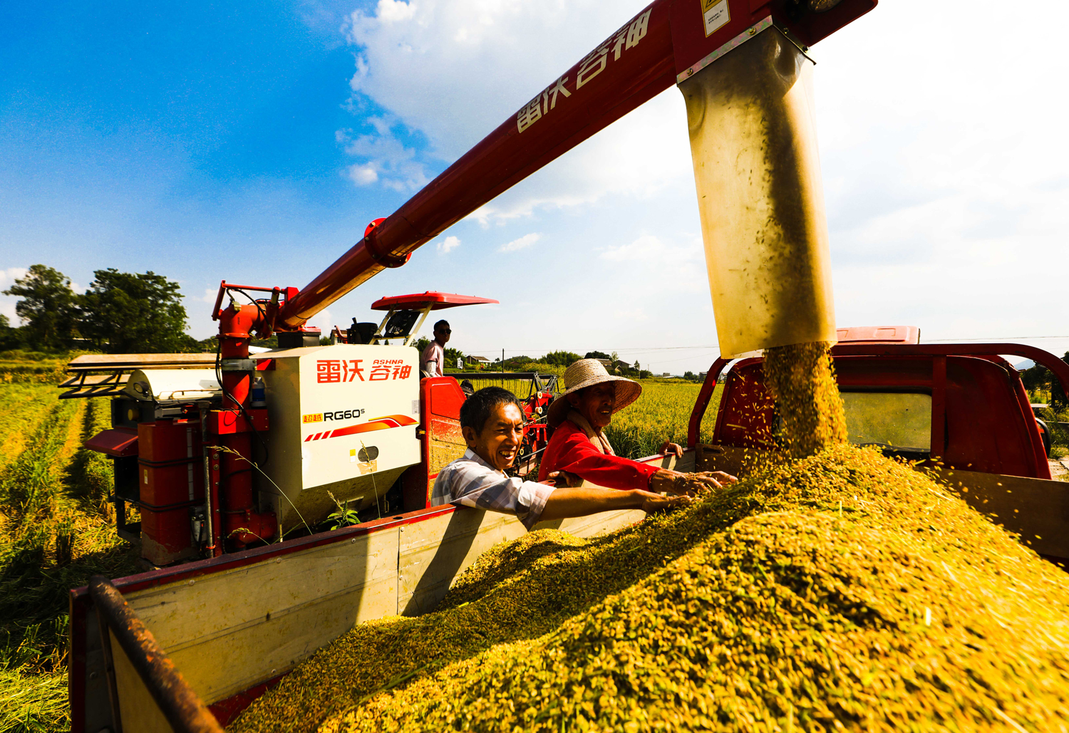 立秋后,在铜梁,水稻陆续成熟。田间地头,稻谷飘香,村民们纷纷抢抓晴好天气,忙着收割水稻。农业部门也及时引进大型收割机,助农秋收,确保颗粒归仓。