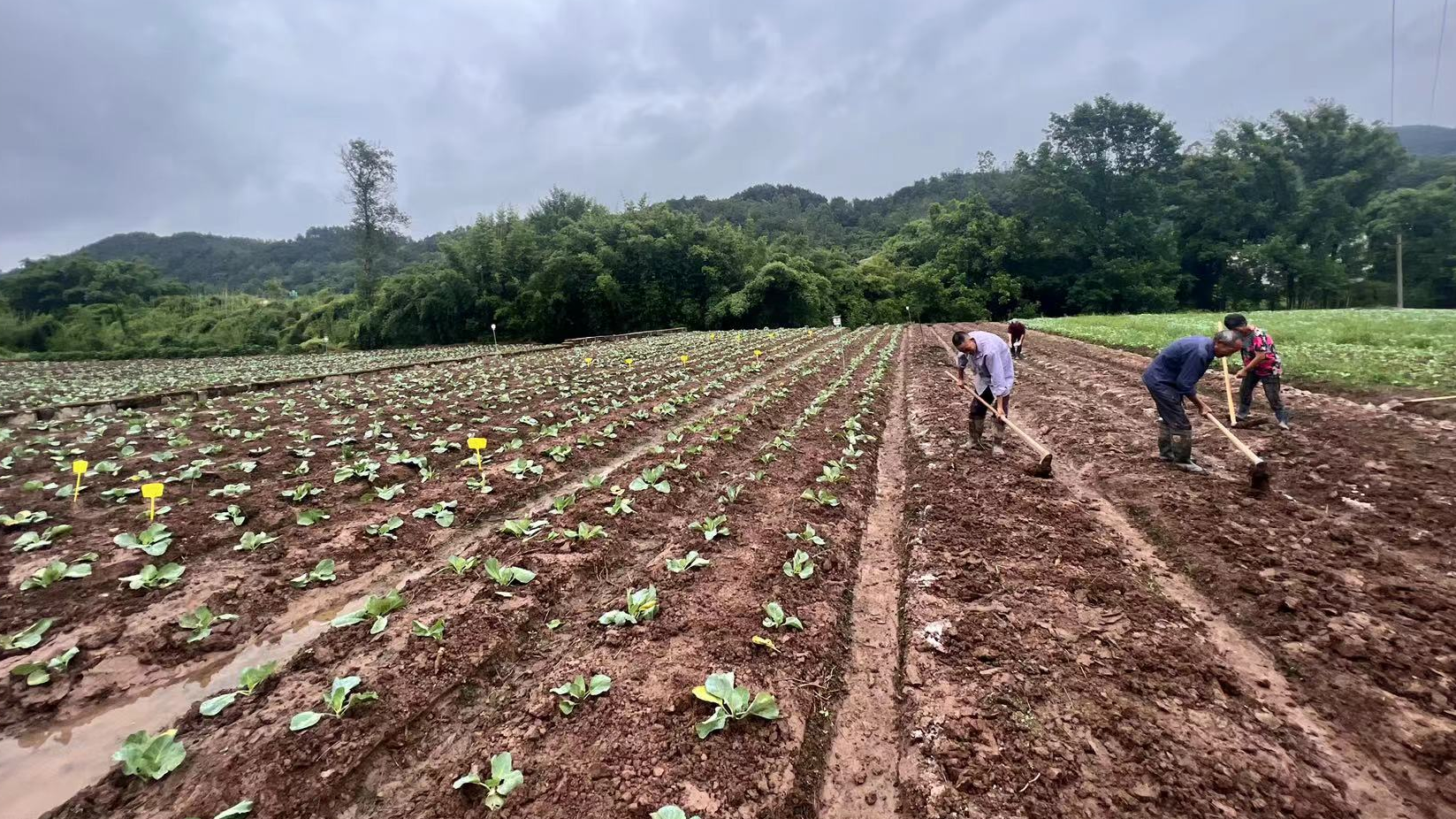 随着降温降雨天气的到来,重庆迎来了秋季的凉意。9月13日,在重庆市綦江区隆盛镇中桥村的蔬菜保供基地里,工人正忙着移栽白菜幼苗。
