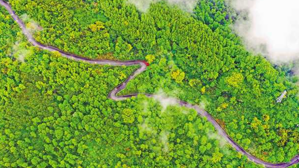 9月12日,万盛经开区万东镇方家山云雾缭绕、满山苍翠,乡村公路沿着山峦蜿蜒盘旋,好一幅乡村生态美景画卷。
