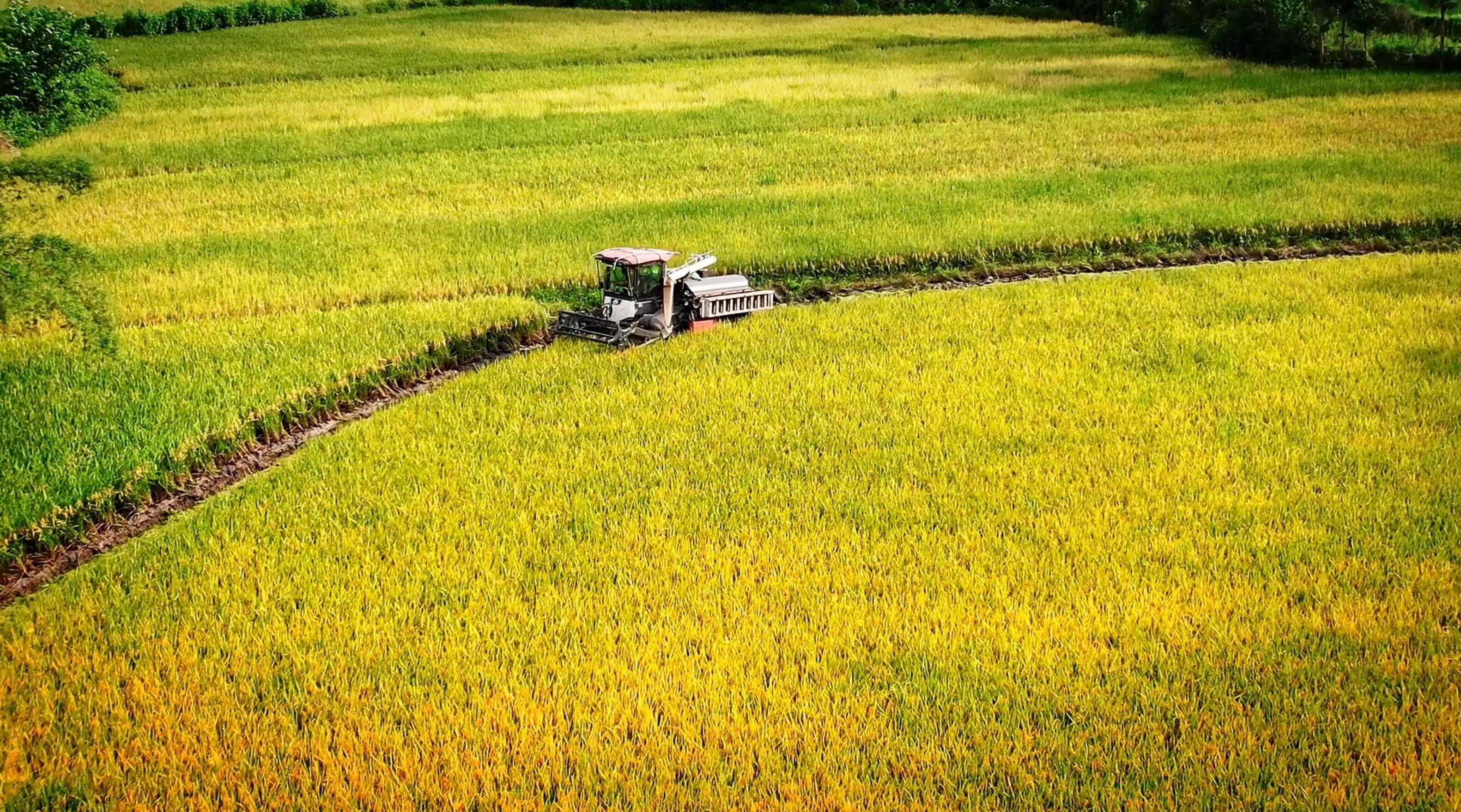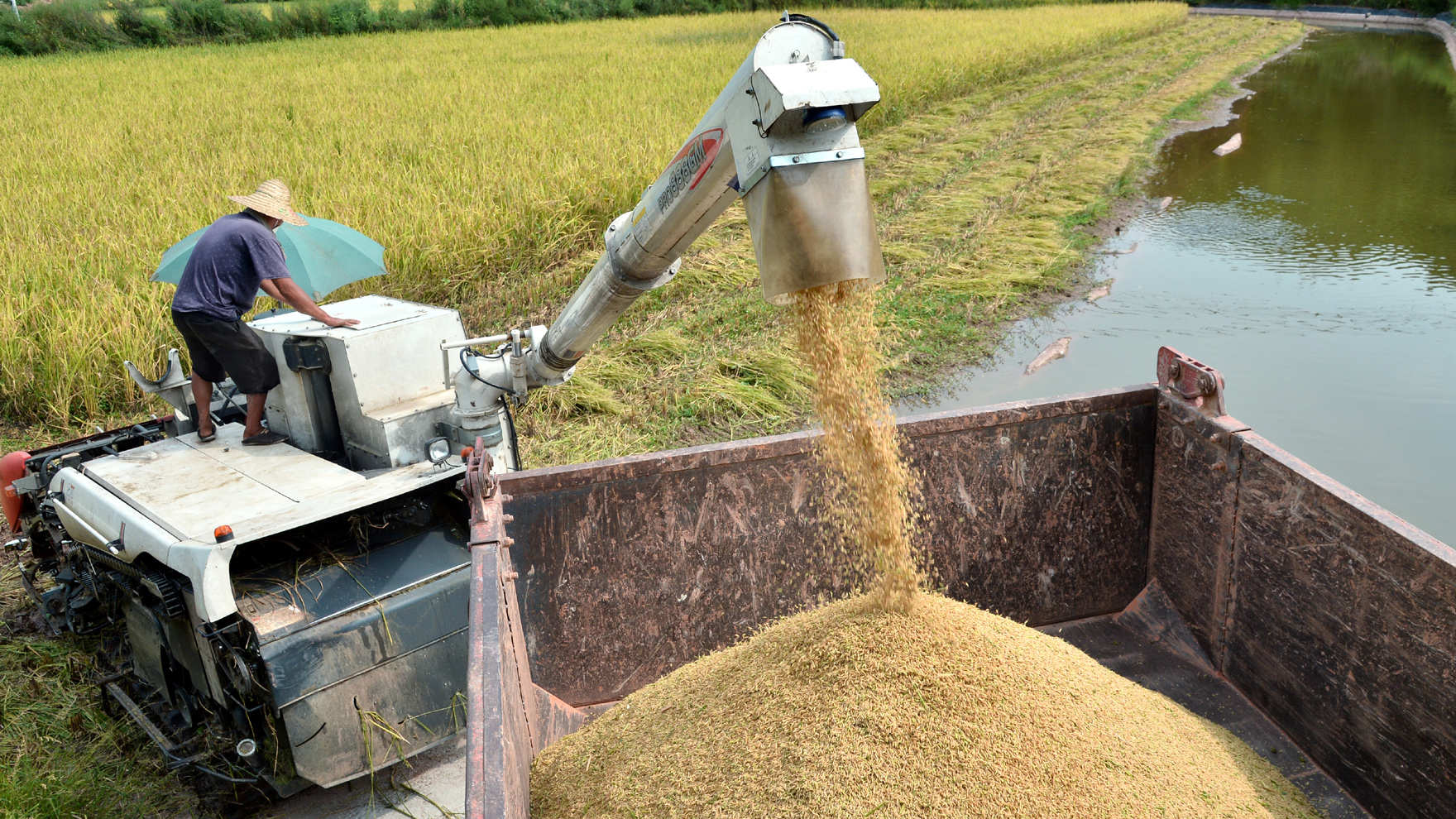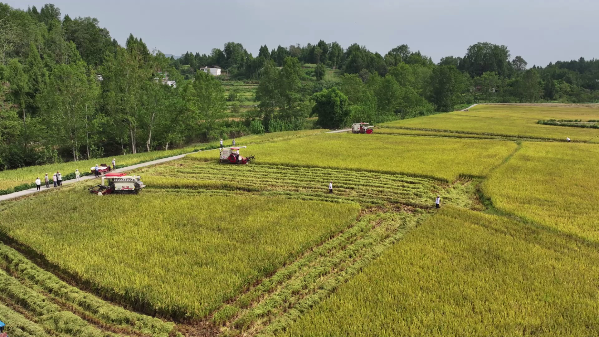 眼下,重庆忠县43万亩中稻进入全面收割期,当地正抢抓农时,积极组织人员、设备进行收割,确保粮食丰产丰收。