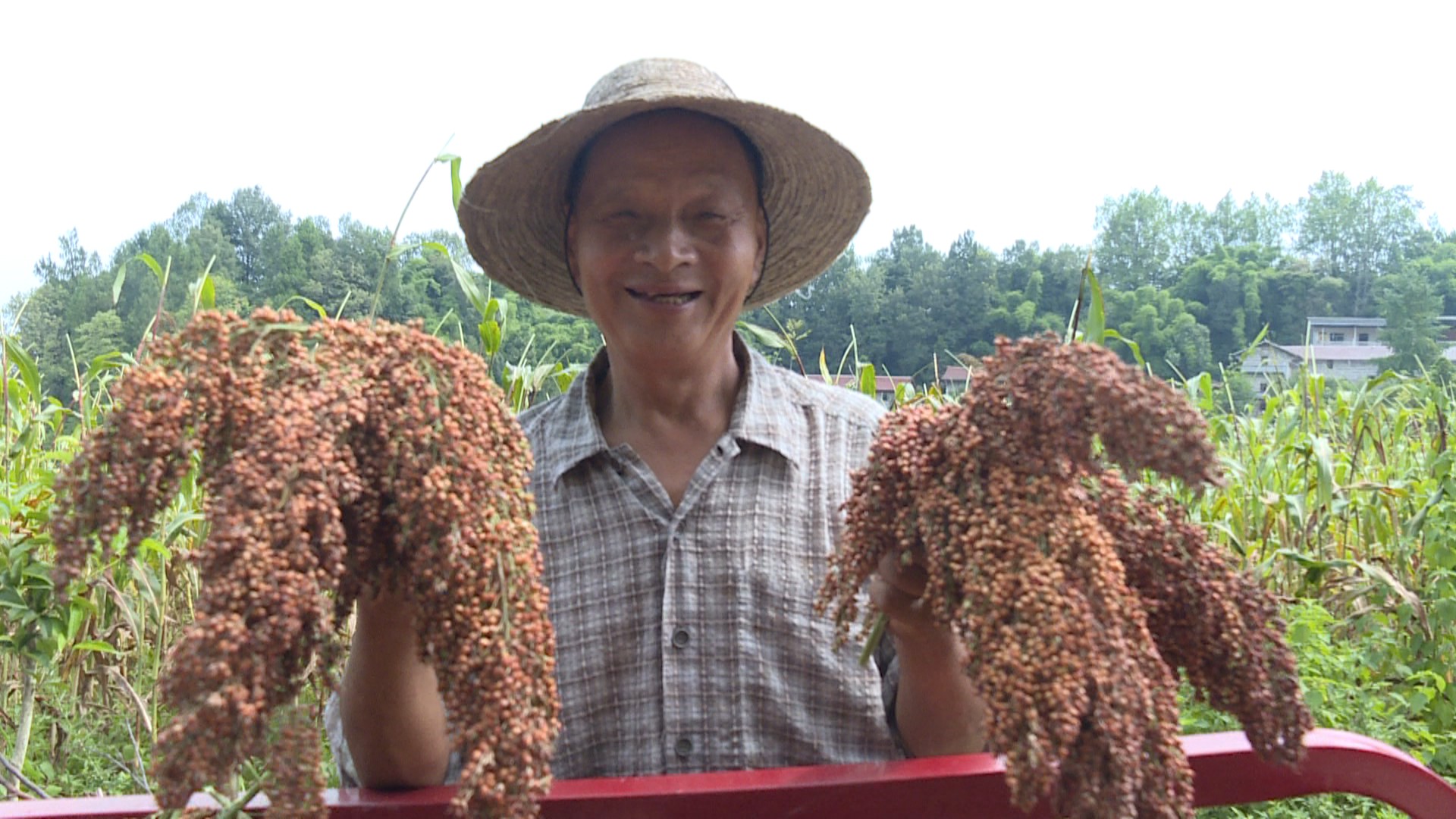 8月24日,忠县新立镇官坪村高粱基地,村民们正热火朝天地收割高粱。
