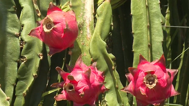 眼下正是火龙果成熟上市的季节,在垫江县新民镇明月村果彤生态观光园,满园的火龙果“披上”娇艳的红妆,吸引了众多游客慕名前来采摘。